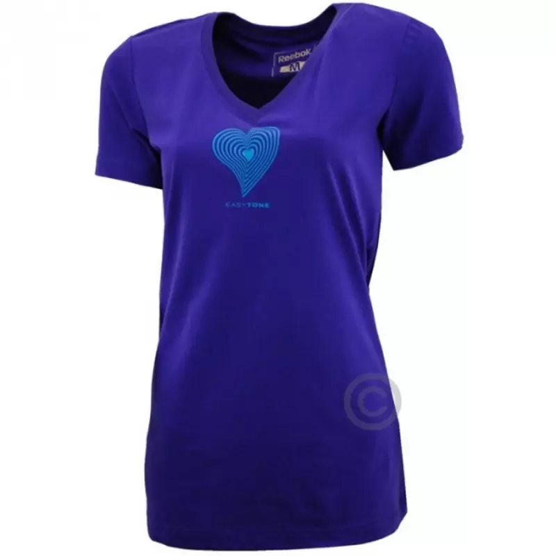 Camiseta manga corta con logo Reebok, cuello ribeteado forma de pico y mangas, corte recto, serigrafiado en pecho en forma de corazon, logo EasyTone