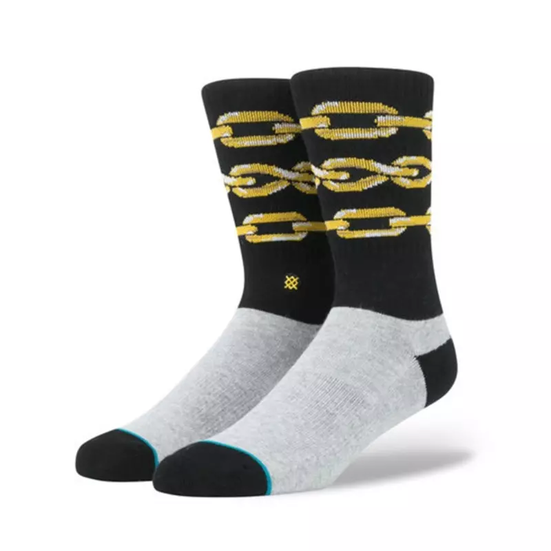 Hand the design reigns over to Klay Thompson and you get masterpieces like Chaining Day. This classic crew sock from the Squad Collection features luxurious combed cotton and tight, 200 needle count stitching. An elastic arch and self-adjusting cuff hug the contours of your feet while a reinforced heel and toe offer additional durability. Where you'd normally see the Stance logo on the inner ankle, Klay added his own insignia.