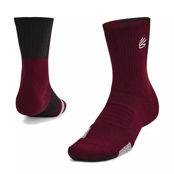 UA Curry ArmourDry™ Playmaker Mid-Crew Socks"Deep Red-Black"