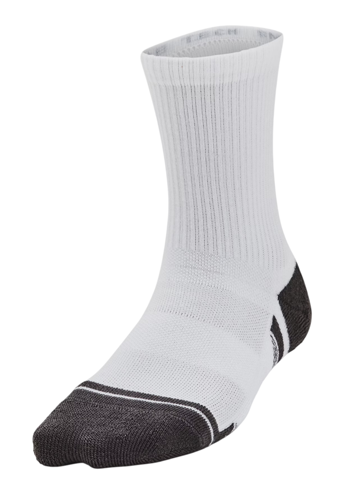 UA Unissex Performance Cotton 3-Pack Mid-Crew Socks "White-Pitch Gray"
